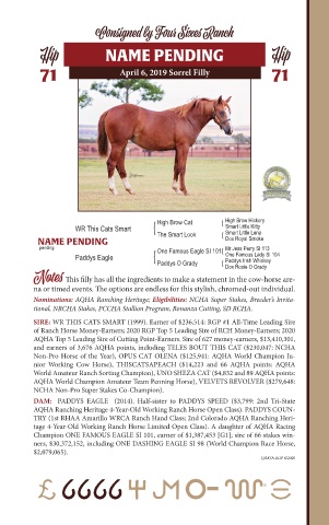 Notes This filly has all the ingredients to make a statement in the cow-horse are-
